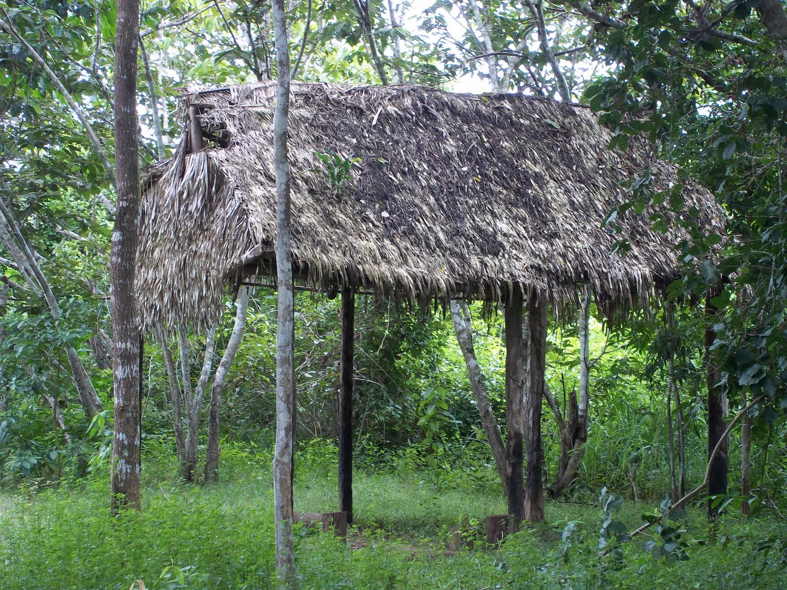 só existe o vestígio das construções do barracão e da casa do seringueiro. |